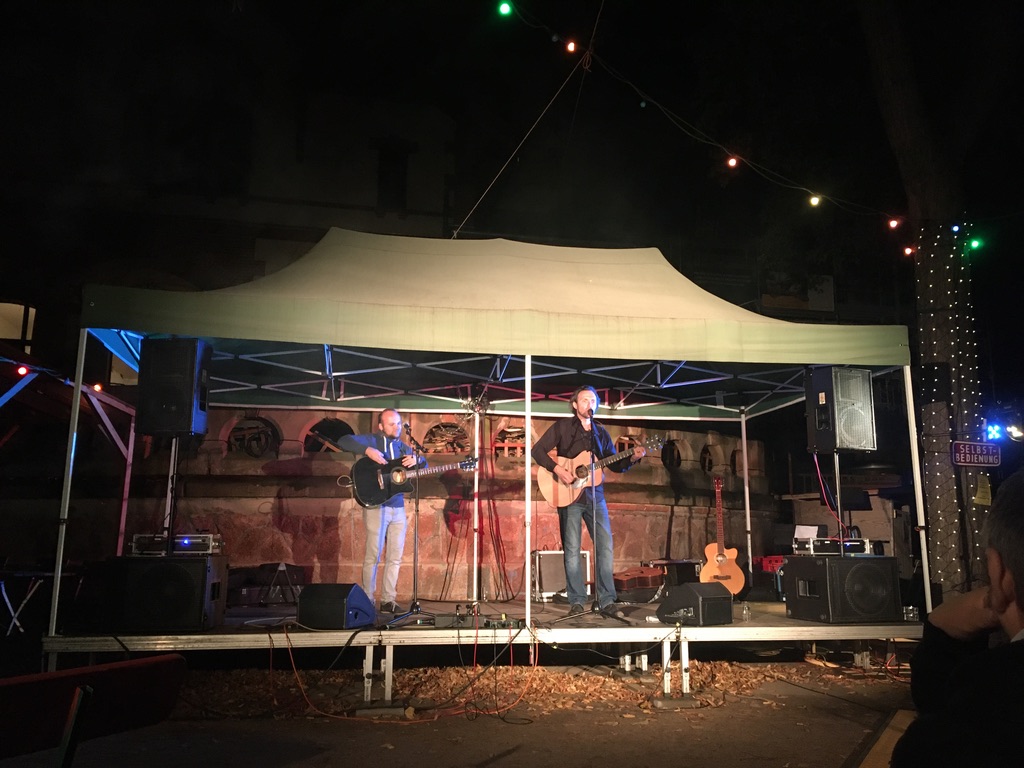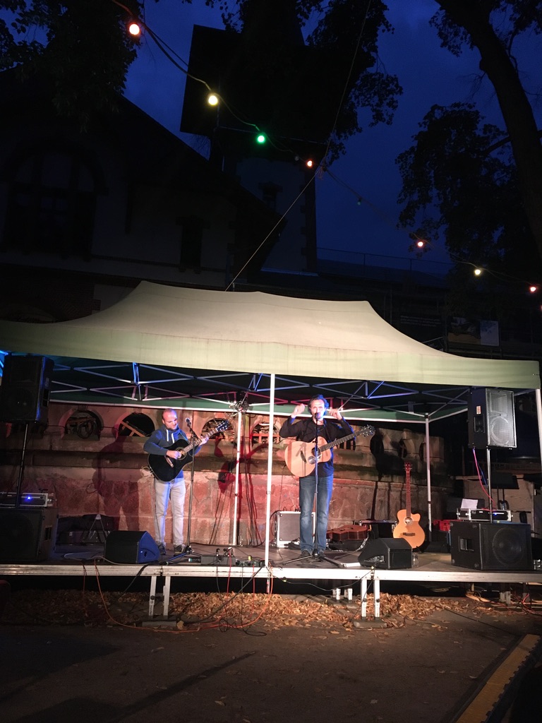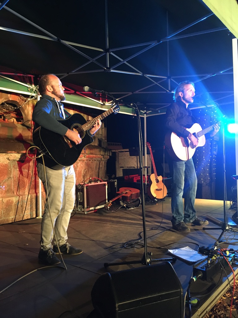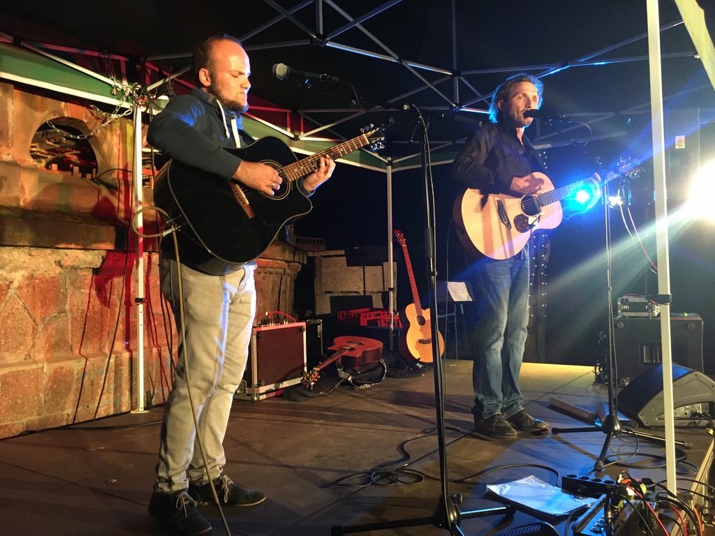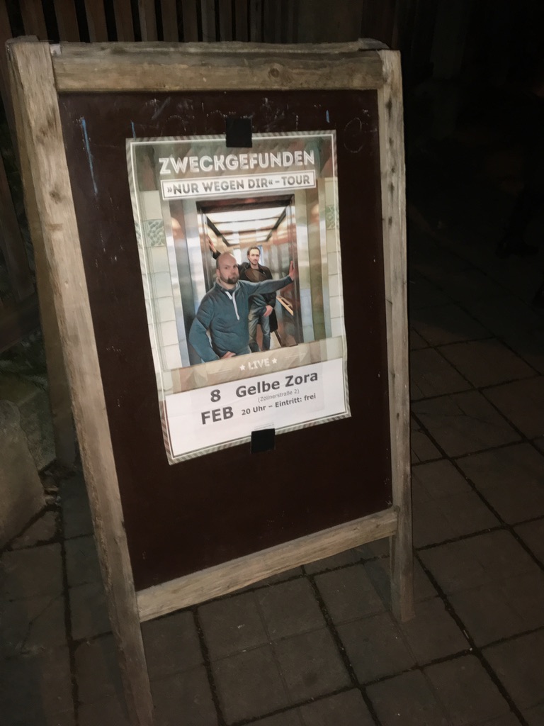 Zweckgefunden – zwei Stimmen und zwei Akustikgitarren – unterhalten mit eigenen deutschsprachigen Liedern, die von wolkig bis heiter, Versagen bis Karriereleiter, von Freizeit bis Hygiene und Eintracht bis Beziehungsszene rangieren. Ernst, schön, melancholisch, humorvoll und groovy nehmen Zweckgefunden ihr Publikum unterhaltsam auf einen Kurztrip durch ihre Leben.